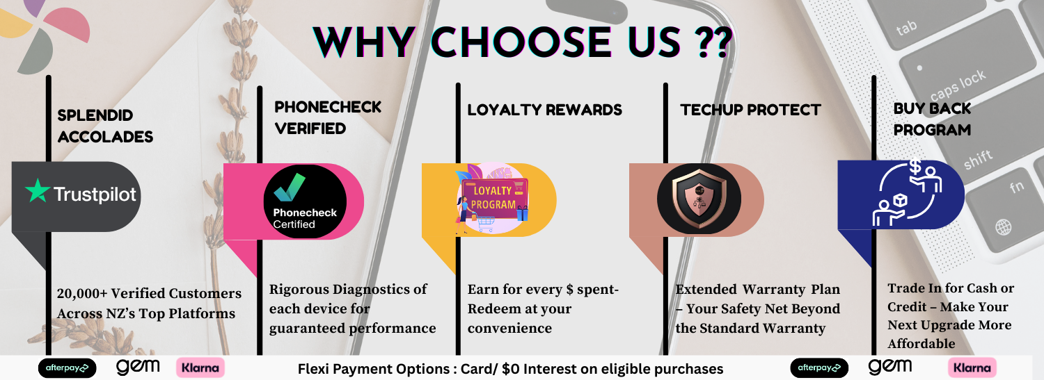 At TechUp, we’re redefining the way you experience technology. Since our launch in 2019, we have been a proudly Auckland-based, NZ-registered business, certified under the Secondhand Dealers and Pawnbrokers Act 2004.