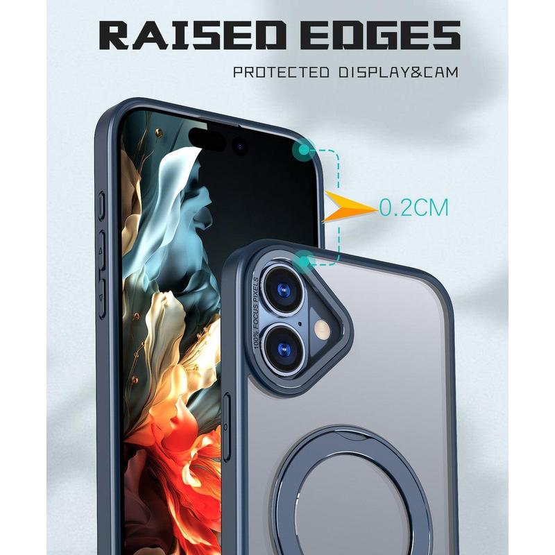 Give your iPhone 16 the protection it needs with the MaxGuard Ring Holder Case, designed with a frosted matte back, rugged bumpers, and built-in MagSafe compatibility. The 360° rotating ring holder doubles as a kickstand and magnetic mount, perfect for hands-free use and driving convenience.