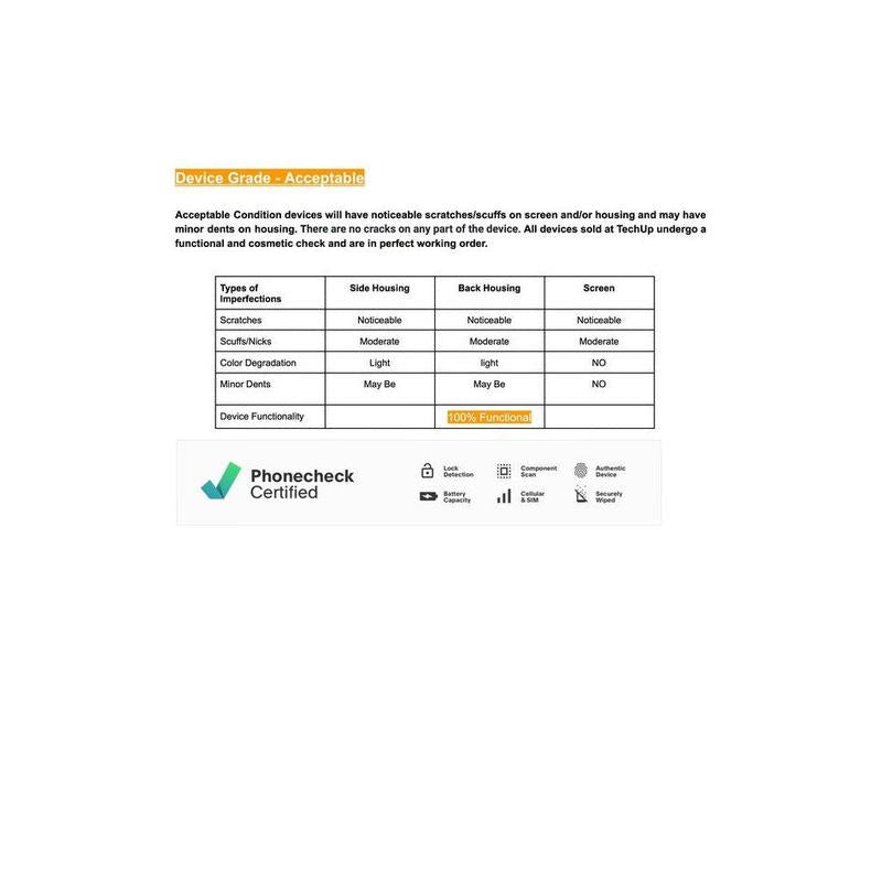 Every phone and tablet undergoes 40+ functionality checks via PhoneCheck diagnostic software. (Verification available on request.)