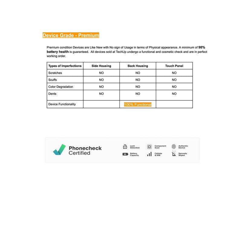 Every phone and tablet undergoes 40+ functionality checks via PhoneCheck diagnostic software. (Verification available on request.)