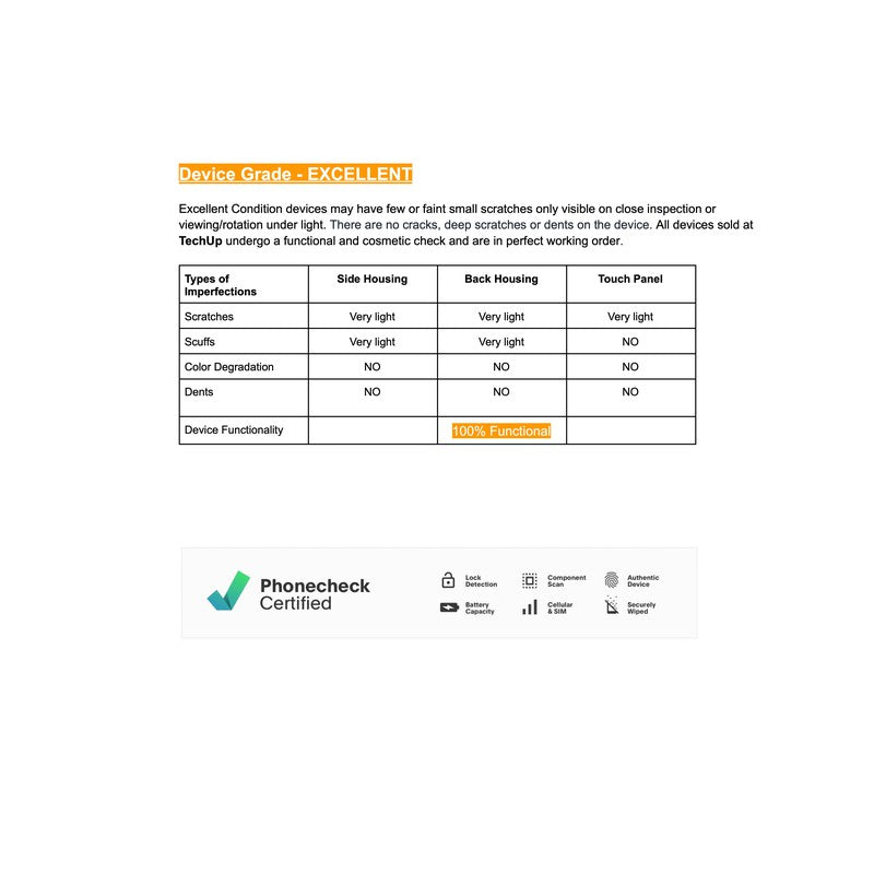 Every phone and tablet undergoes 40+ functionality checks via PhoneCheck diagnostic software. (Verification available on request.)