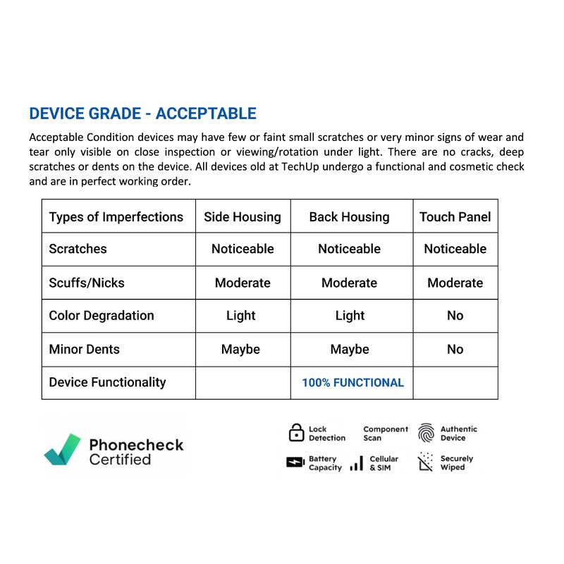 Every phone and tablet undergoes 40+ functionality checks via PhoneCheck diagnostic software. (Verification available on request.)