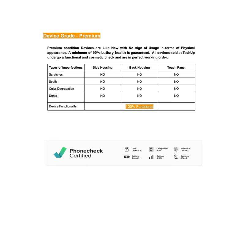 Every phone and tablet undergoes 40+ functionality checks via PhoneCheck diagnostic software. (Verification available on request.)