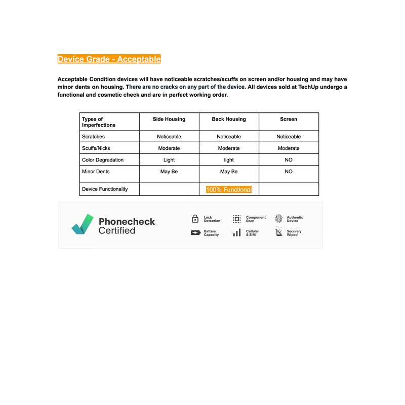 Every phone and tablet undergoes 40+ functionality checks via PhoneCheck diagnostic software. (Verification available on request.)