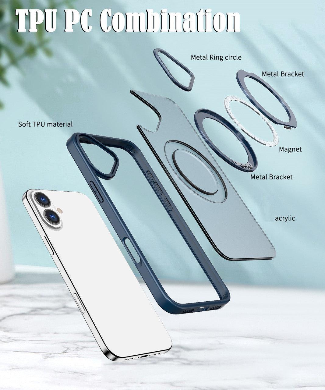 Give your iPhone 16 the protection it needs with the MaxGuard Ring Holder Case, designed with a frosted matte back, rugged bumpers, and built-in MagSafe compatibility. The 360° rotating ring holder doubles as a kickstand and magnetic mount, perfect for hands-free use and driving convenience.